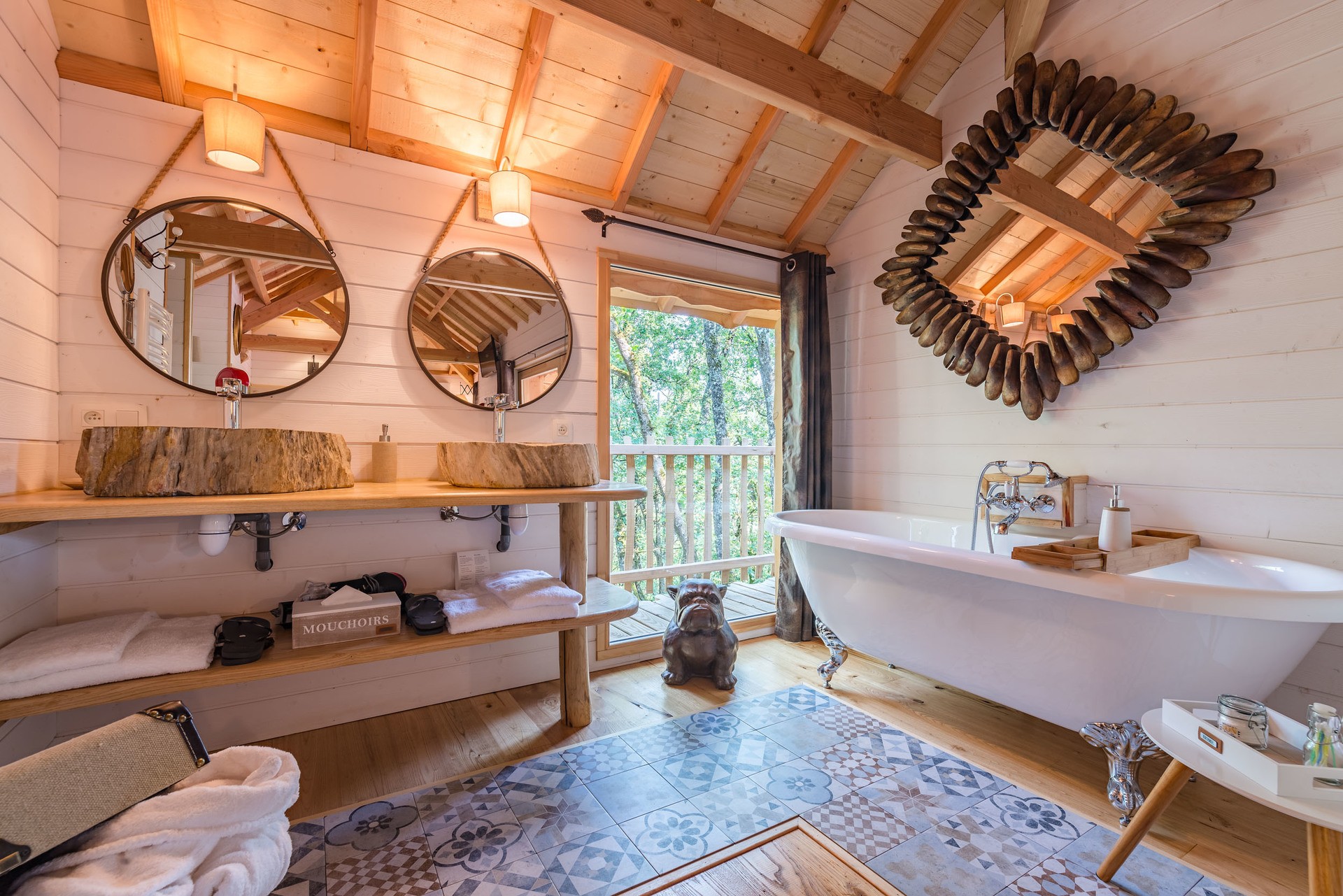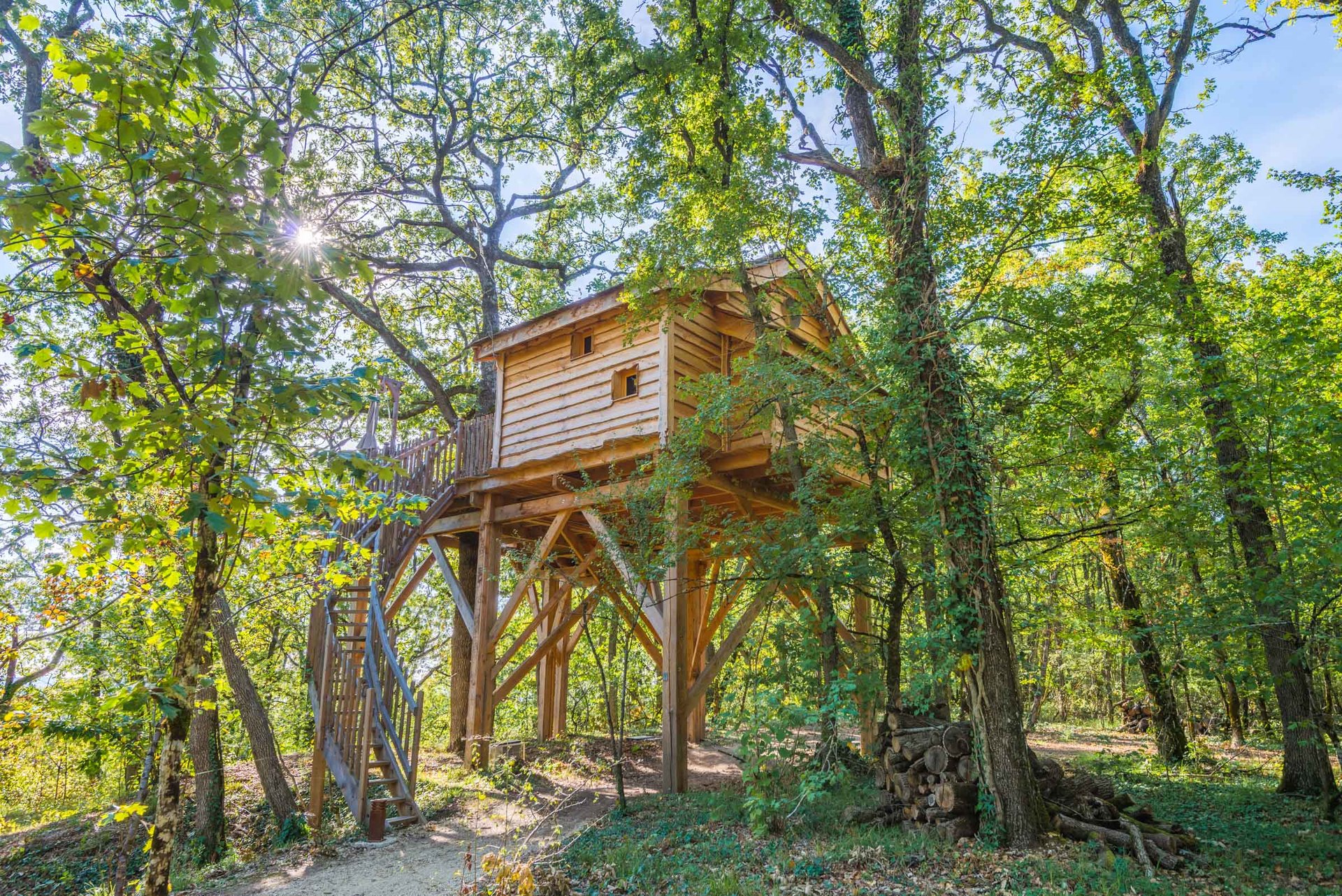 Sud-Ouest de la France entre Bordeaux et Toulouse, venez découvrir les cabanes de luxe avec spas du Domaine de Pech & Lafon. Réserver et louer une cabane de standing avec spa dans les arbres en Lot et Garonne.
