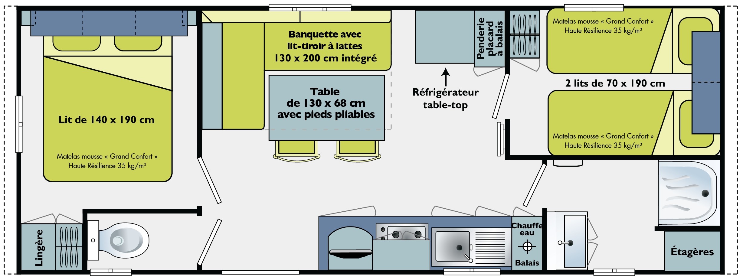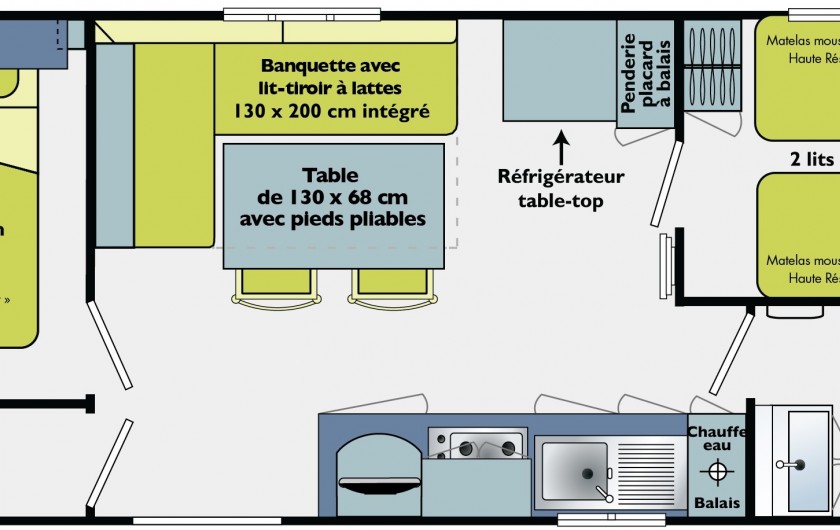 Le TITANIA 2014 est un Mobile-home pour 4 personnes de 23m²