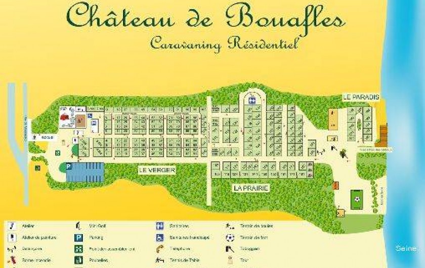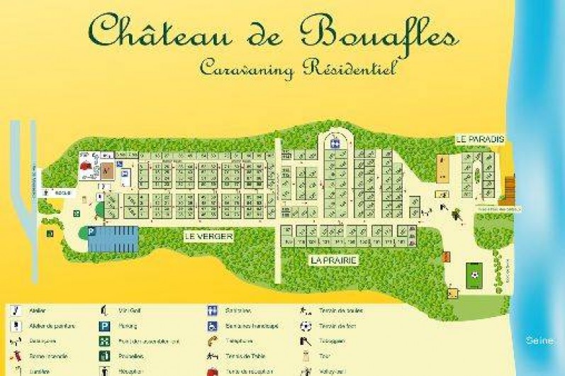 Location de Mobil-Homes au village de Bouafles, aux portes de la Normandie, idéalement situé en bord de Seine, à 100 km de Paris ,40 km de Rouen, proche des Andelys et de Gaillon , dans un parc arboré de 13 hectares.
