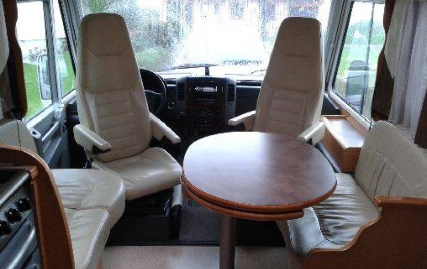 Véhicule campervan cellule pilote modèle explorateur sur chassis mercedes 184 cv longueur 7m33 intérieur cuir boîte automatique limiteur de vitesse rétro électrique radio cd mp3 gps caméra de recul, téléviseur avec parabole automatique, porte vélo (4) frigidaire congélateur, bruleur 4 feux gaz, four, four pizza, 2 lits jumeaux et 1 grand lit pavillon, grande salle de bain située à l'arrière du véhicule comprenant douche lavabo et wc, store latéral, table extérieur et chaises, 2 relax, ustensiles de cuisine vaisselle et couverts, barbecue, draps et couvertures non fournis.
