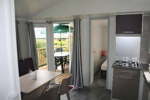 location d'un mobil home en normandie à 5 mn en voiture de la mer depuis le camping. Location de vacances située dans un cadre chaleureux et verdoyant. La location du mobil home peut se faire pour six personnes. Matériel neuf avec terrasse semi couverte. Sur la parcelle de la location du mobil home, vous trouverez un barbecue. Avec possibilité de garer votre voiture sur l'emplacement.