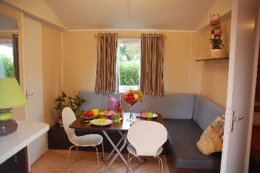 le mobil home gamme green 26 est idéal pour r 4 personnes. Disposant de deux chambres ( 1 lit de 2 places et 1 de 2 lits séparés ) - couvertures et oreillets compris. TV inclus. Salle de bain, WC, cuisine avec vaisselle. Terrasse en bois, salon de jardin, barbecue en pierre, parking privatif etc.