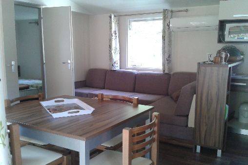 Equipements tout confort (mobile-home équipé de climatisation, lave-linge), Terrasse spacieuse semi-couverte donnant un espace de vie supplémentaire. Domaine de Montourey; espace aquatique avec toboggan et pentagliss 3 pistes, 3 piscines,club enfants,ados et adultes,nombreuses animations en haute saison. (Fun Pass à acquérir en supplément).