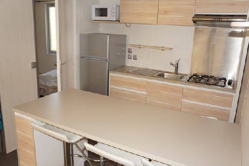 Le modèel Lodge confort est climatisé et entièrement équipé, une chambre avec un lit double et une chambre avec deux lits simples les deux chambres sont séparées par le salon, une salle de douche, un WC séparé, un coin salon avec télévision et lecteur DVD,le coin cuisine une cuisine équipée (plaques gaz, micro-ondes , réfrigérateur, vaisselle et ustensiles de cuisine, bouilloire, machine à café Nespresso, grille pain), une terrasse en bois, un salon de jardin composé d'une table et 4 chaises et 2 transats. Une place de parking sur un parking prévu pour les véhicules de ce village de Mobil home.