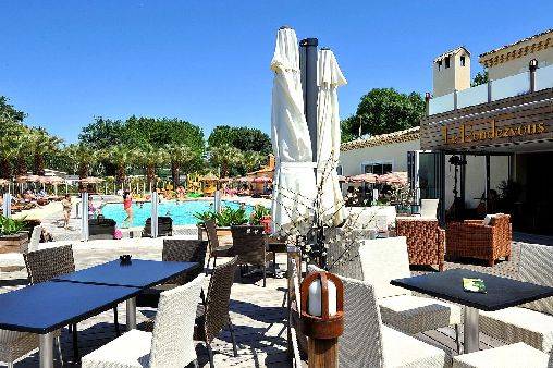 Sur une vaste terrasse entièrement rénovée dominant la rivière La Giscle, se trouvent le bar, le restaurant, la salle de jeux avec écran géant, les 2 piscines, le Jacuzzi, l'aire de jeux pour enfants et les animations sportives. Animations gratuites en juillet et en août