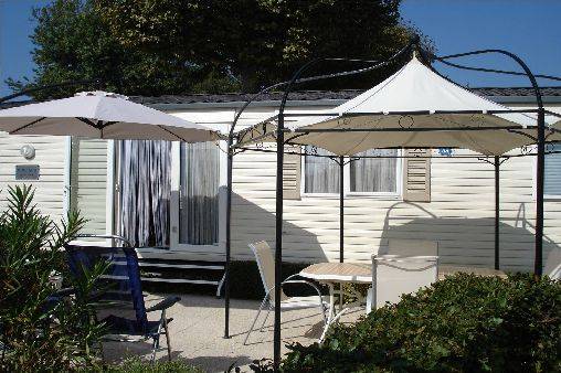 PARTICULIER loue luxueux Mobil Home grand confort climatisé Empire de 37m2 - 2 CH - 2 SDB - 2 WC, situé au Camping Holiday Marina 5* avec piscines et proche de la plage, dans un ENDROIT CALME, pas de vis-à-vis direct, belle terrasse tout confort avec tonnelle et 2 parasols.