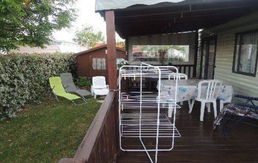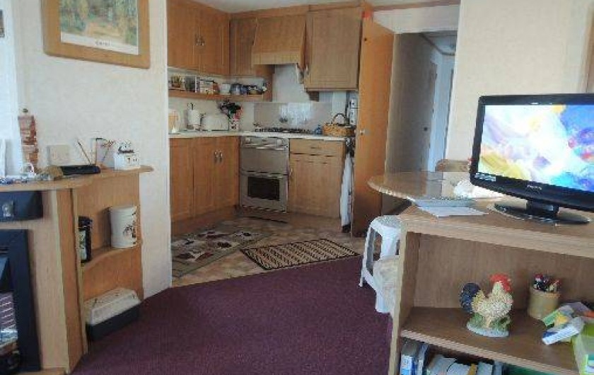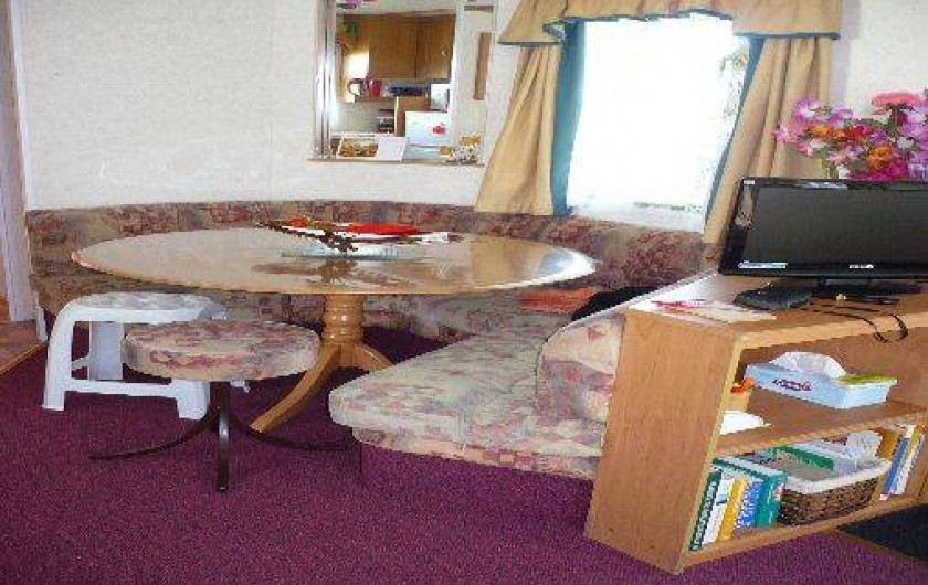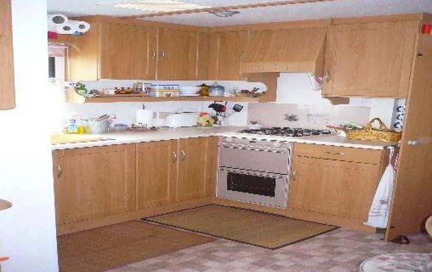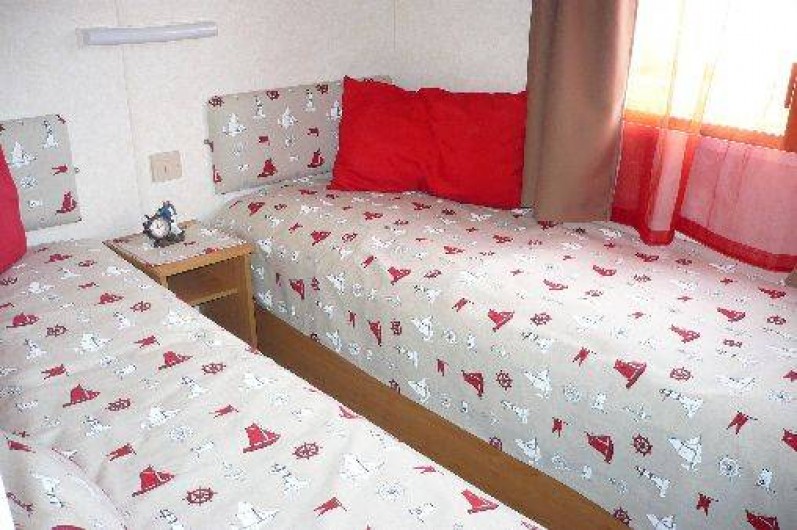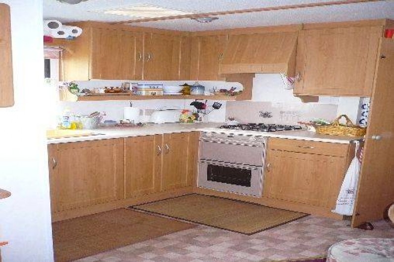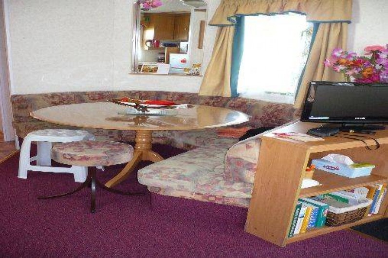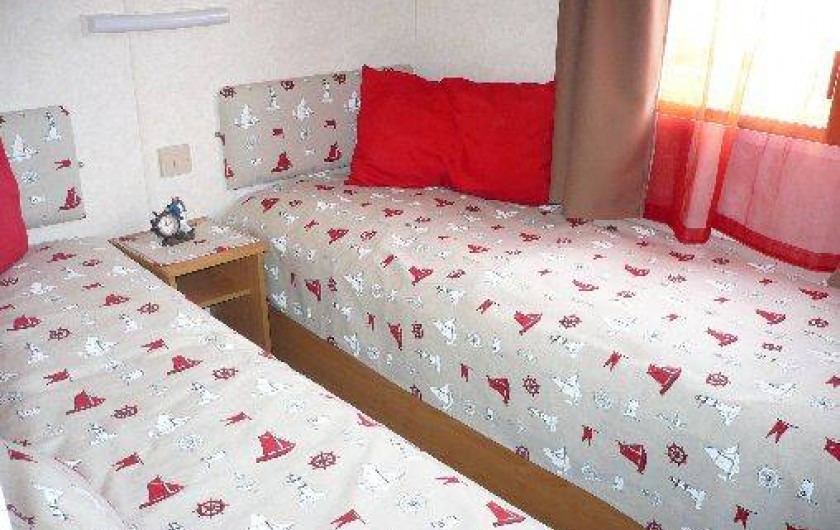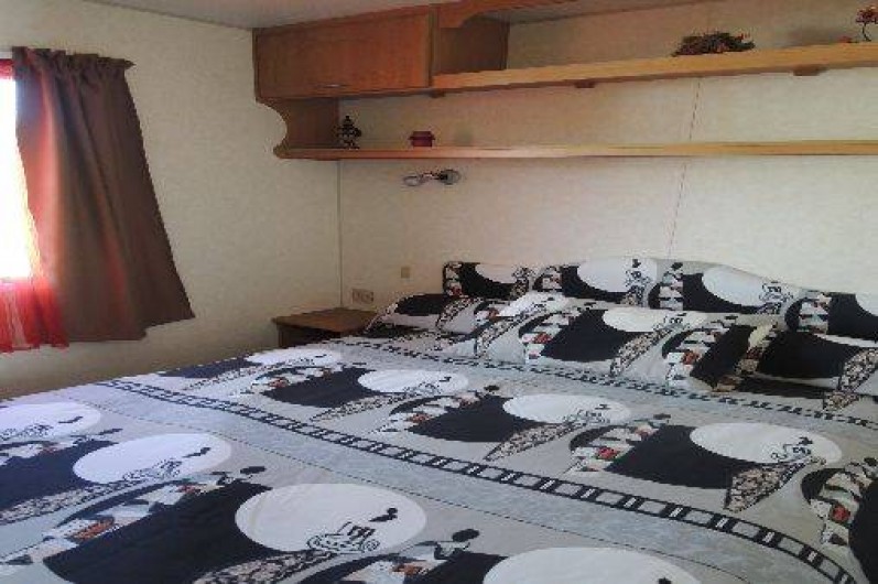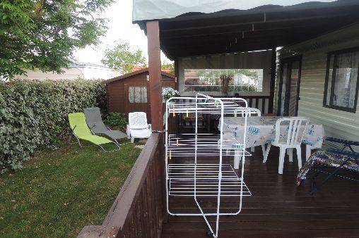 Le mobil-home comprend 3 chambres (1 lit de 140, 2 lits non superposés, 2 lits superposés) un salon panoramique (télé) une cuisine tout équipée (réfrigérateur avec congélateur, micro-onde,bouilloire, cafetière et grille pain) un coin repas indépendant du salon, une salle d'eau,WC séparé, une terrasse en bois de 25 m² semi