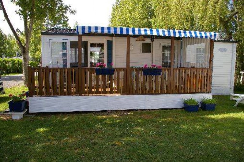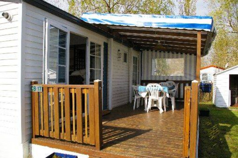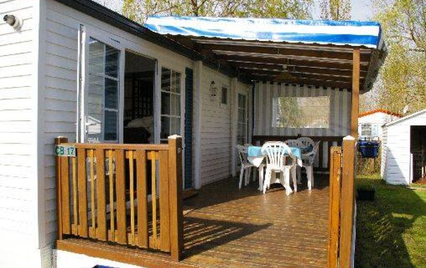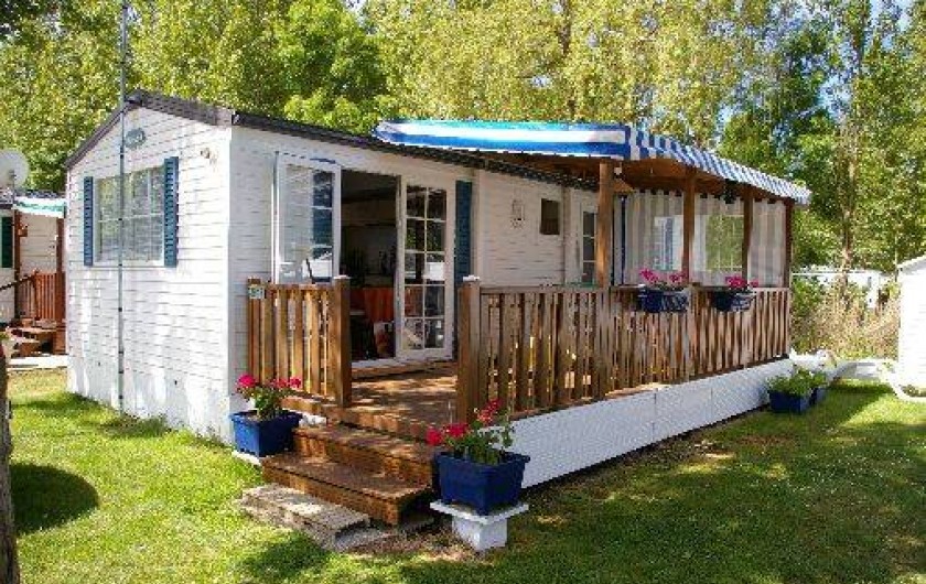 Particulier loue mobil-home panoramique 37 m² 4/6 personnes avec grande terrasse 2/3 couverte. dans la zone VIP, moins de voitures pas d'accès direct au reste du camping