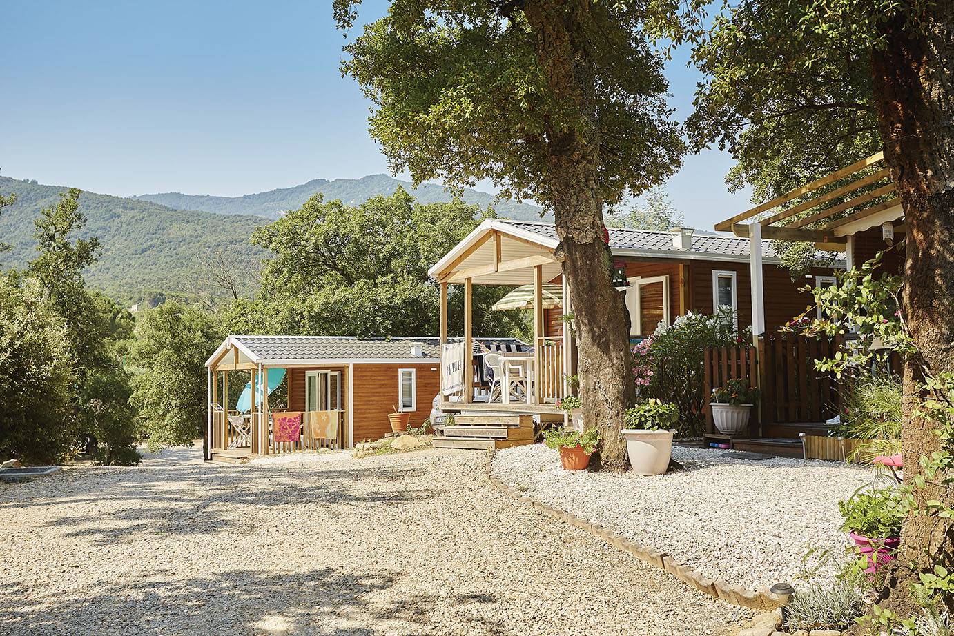 Location mobil-home, chalet, tente aménagée et emplacements pour caravane et tentes au pied du Massif des Albères dans les Pyrénées Orientales.