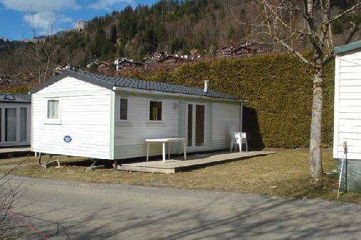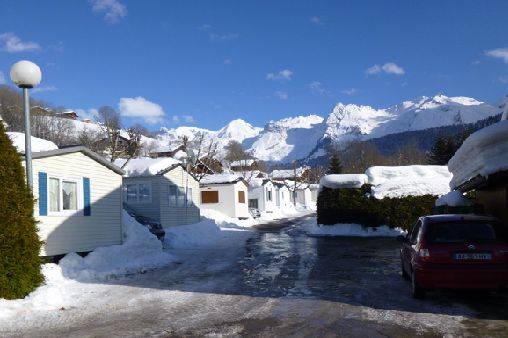 Parking à côté du mobil-home, local ski, containers à poubelles +verres + plastiques situé à 50 mètres