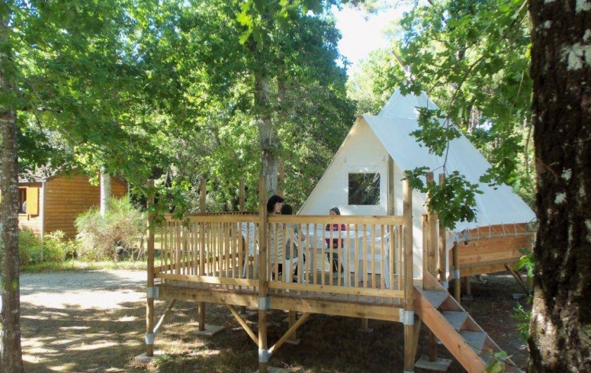 d'animation de 100 m2, d'une salle de jeux et d'un château gonflable. Le WIFI est accessible dans tout le camping, payant sur les emplacements et gratuit autour du Bar. Nous proposons des mobilhomes, des chalets, des Tipis et des Coco Sweet à la location ainsi que des emplacements pour tentes et caravanes. Etant proches de la Vélodyssée et du GR 8 et compte tenu de leurs faibles bilans carbone, nous offrons une remise spéciale pour les randonneurs et les cyclotouristes. En basse saison, nous organisons des stages de Yoga (Alimentation bio et ayurvédique et yoga à la plage et dans la yourte). A proximité: en face du camping, pension pour chevaux avec écurie et carrière d'entrainement. A visiter: les châteaux du Médoc, les phares de Cordouan et de Richard, le Zoo de la Palmyre,... Sports nautiques: Voile, Surf, Paddle, Windsurf, Jetski.