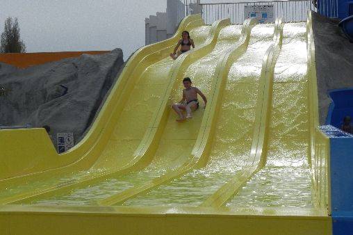 un grand complexe aquatique 4 toboggans grande piscine extérieur et intérieure chauffée avec transats à disposition autour ,1pataugeoire jacuzzi, surveillé par maitres-nageurs confirmés ,aquagym salle de fitness