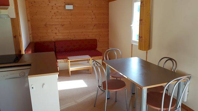 Venez séjourner au camping dans nos jolis chalets situés en pleine verdure sarthoise (maximum 6 personnes). Nos 3 chalets de 12 à 15 m2 sont