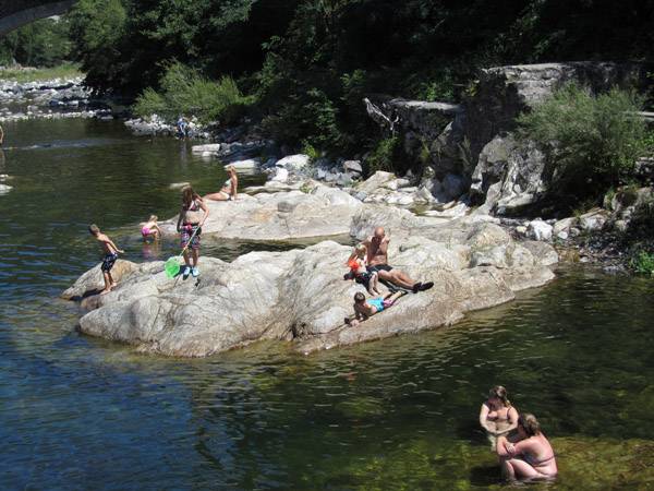 Directement accessible du camping une plage privée de sable/galets (en fonction des crues). La rivière de l’Ardèche vous offre à cet endroit non très loin de sa source une qualité d’eau exceptionnelle qui vous permettra la baignade dans des