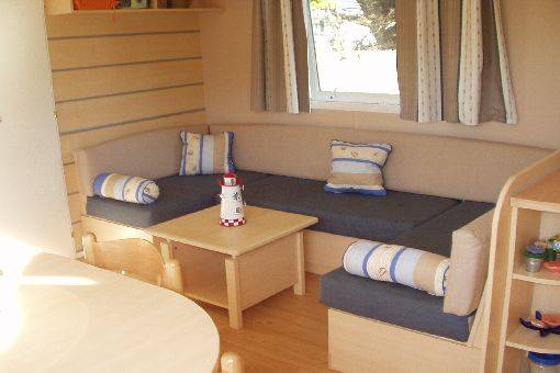 Mobil home situé sur le camping municipal de Louannec ***. Il comprend une entrée, une cuisine équipée avec un four micro-ondes, plaques, réfrigérateur congélateur, un salon salle à manger avec TV. Trois chambres équipées de nombreux rangements dont deux avec lit double.