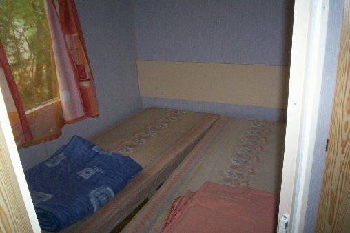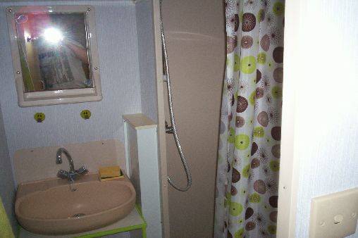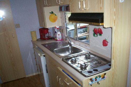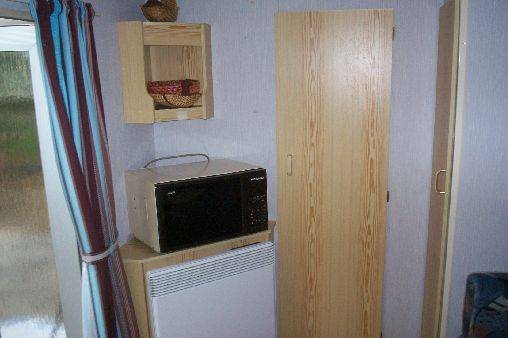 Mobil-Home tout équipé, de 2 chambres dont une avec 2 lits d’une personne, et l’autre un lit de 2 personnes, une pièce principale avec cuisine , salle de bain avec cabine de douche et wc, micro onde, frigidaire, terrasse