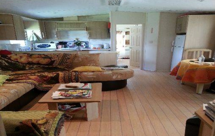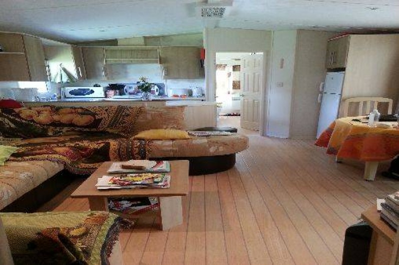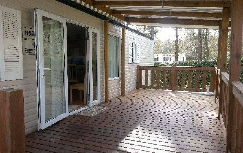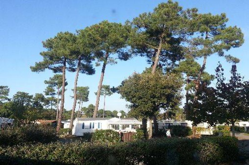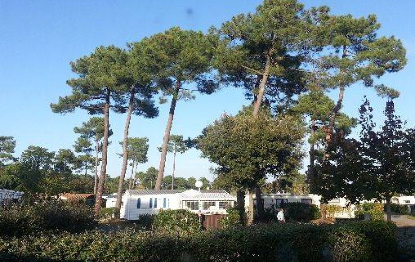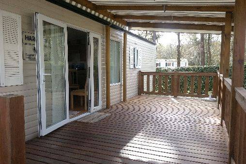 Mobilhome spacieux de 43 m2 sur emplacement calme avec vue sur forêt de pins.
