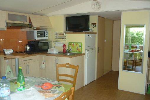 mobile home tout confort cuisine équipée neuf(électroménager) four micro ondes,four grill traditionnel,deux réfrigérateur dont 1 avec compartiment congélation.cafetière électrique,bouilloire électrique,barbecue électrique,télévision écran plat 81 cm(tnt),lave linge,lave vaisselle
