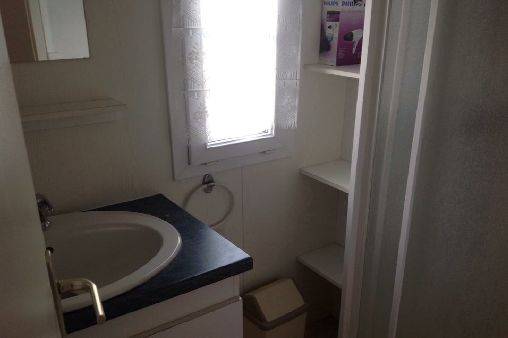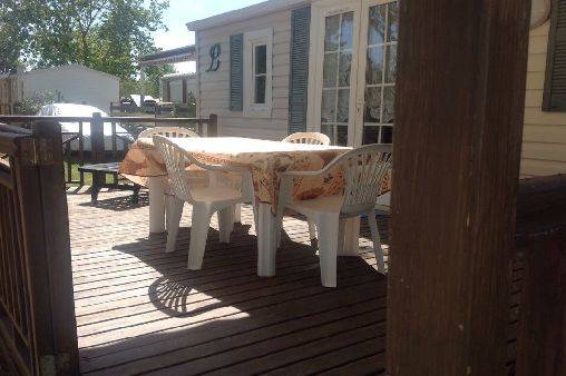 Loue mobil home de 35 m2 avec terrasse a moitié couverte, 2 chambres dont 1 avec un lit double et l'autre avec deux lits d'une personne salle de bain avec douche, wc séparé , puis la pièce principale, salon plus cuisine équipée , four électrique, micro onde, cafetière,senseo,vaisselle comprise, plancha électrique, Tv .