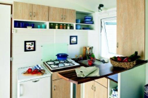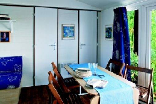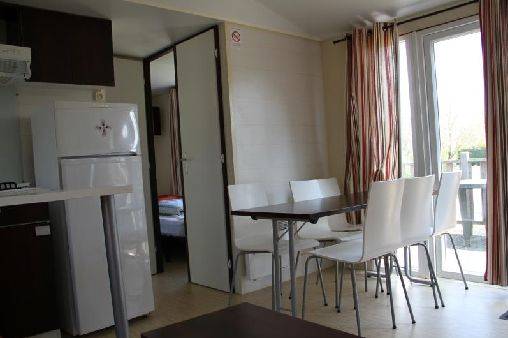 Entièrement équipé pour 6 personnes dont 1 bébé, ce mobilhome de 35 m² est composé d'une chambre à lit double 140x190, d'une chambre de 2 lits de 80x190 et d'un lit bébé à barreaux, et d'une chambre cabine composée d'un lit à étage 80x190, d'un séjour avec convertible, d'une cuisine avec micro-onde, d'une salle de bain et d'un WC séparé.Il possède également une chaise haute et de vaisselle pour petits. Sa terrasse extérieure couverte de 9 m² vous permet de profiter pleinement de l'extérieur en tout temps. Il peut accueillir à titre exceptionnel, 1 à 2 personnes … supplémentaires sur le convertible en dépannage et limité à 2 jours maximum. Lire moins Lire la suite