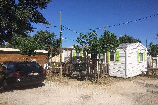Mobilhome confort de 30 m2 , 4-6 personnes avec terrasse ombragée équipée d'un salon de jardin et emplacement voiture