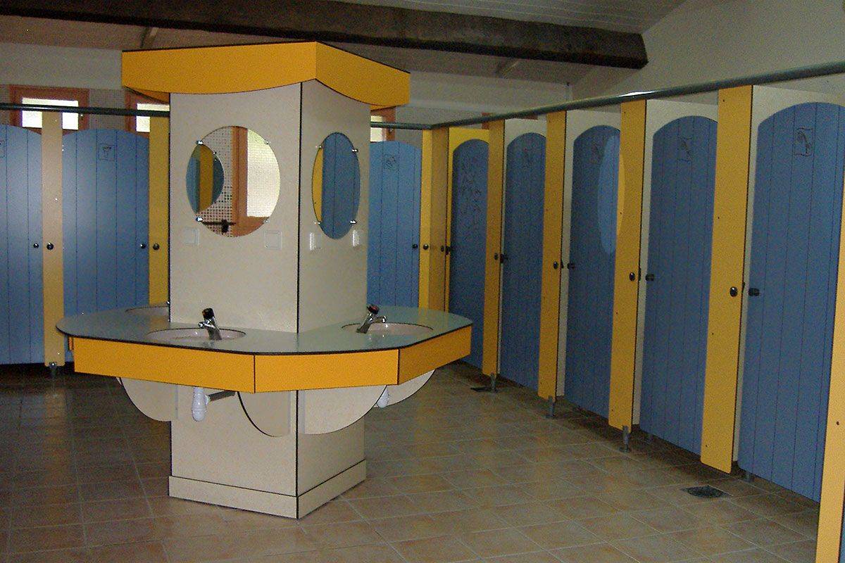 2 blocs sanitaires, dont 1 accessible pour les personnes à mobilité réduire, sont à votre disposition avec cabines de douche, lavabos et WC