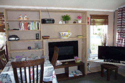 location mobil home 45 m2 place dans un emplacement tranquille du parc comportant 2 chambres;une avec lit 140 et un dressing ;l'autre 2 lits de 90 et placard ;en plus dans le salon un canape lit pour 2 personnes,une salle d'eau avec grande douche, machine à laver linge ,un wc separe,cuisine ammenagee avec machine à laver vaisselle ,climatisation ,television,wifi payante avec Siblu