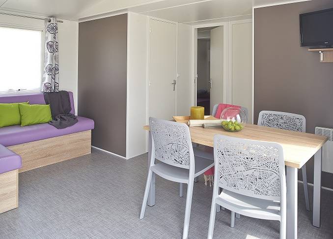 Le Camping l'Escale vous propose de séjourner dans nos mobil homes entièrement équipés avec réfrigérateur,cafetière,micro ondes,télévision,salon de jardin,chaises longues et barbecue.