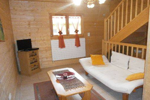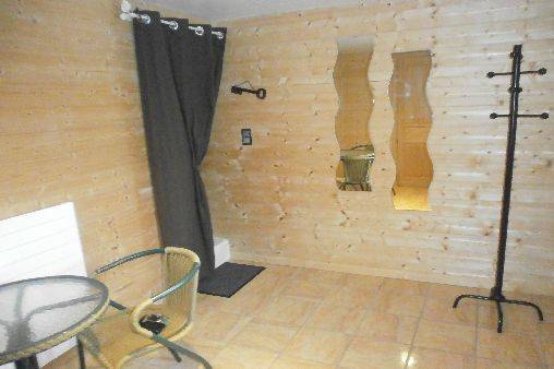 Le chalet se compose: 1 entée,1 salon séjour (cuisine équipée) avec accés balcon et terrasse, 1 salle d'eau avec douche à l'italienne et baignoire, wc indépendant.