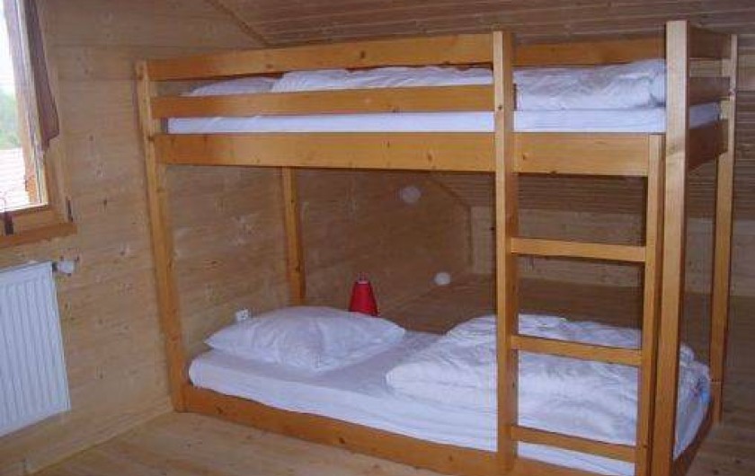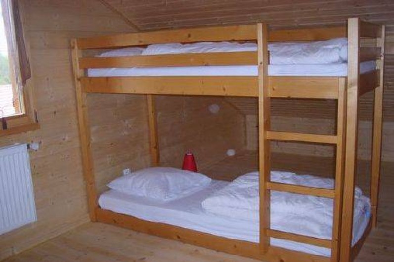 A l'étage: 2 chambres avec 2 lits 2 personnes, 1 lit à étage 2 couchages et 1 banquette servant de lit d'appoint.