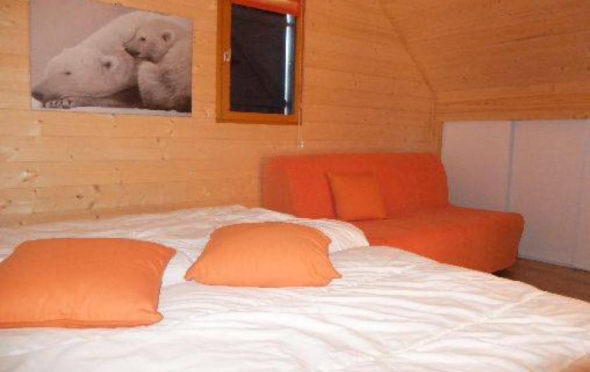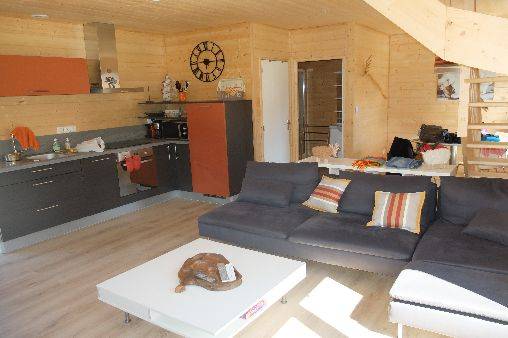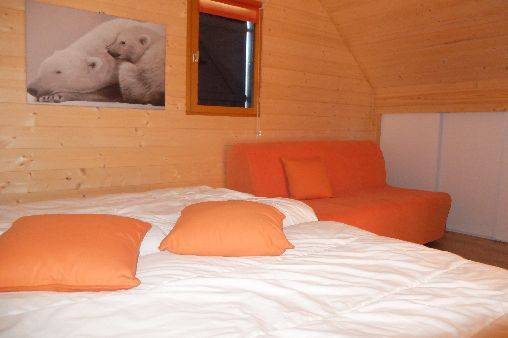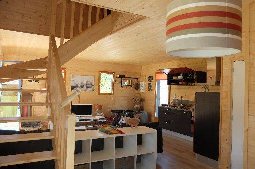 Le chalet est composé au rez de chaussée d'un salon Cuisine équipée et coin repas formant une pièce de 30 m2 d'une Salle de bain avec douche et d'un WC séparé , à l'étage le chalet dispose de deux belles chambres , l'une équipée de deux lits de 90 et d'un canapé lit de 140 , l'autre deux lits de 90 .