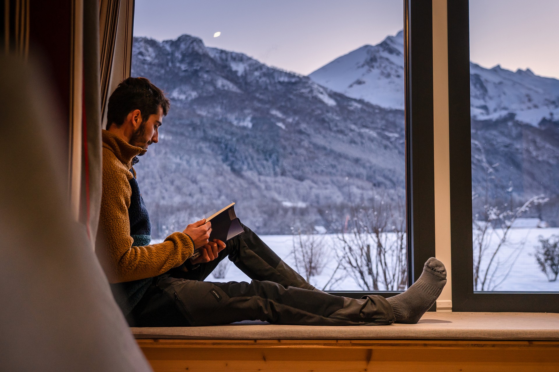 Chaque chalet est doté d'une décoration personnalisée, de larges baies vitrées pour profiter de la vue exceptionnelle à 180 ° sur les montagnes qui vous entourent.
