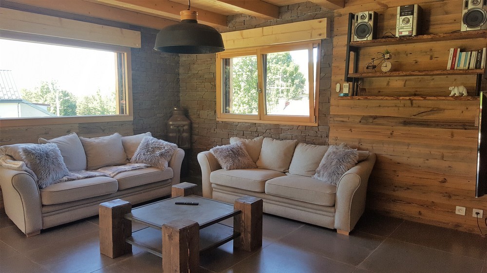 Côté extérieurs, grande terrasse en bois de 60m² offrant une vue imprenable sur la nature environnante. Elle est équipée de salon de jardin, parasol, chaises longues, et barbecue pour la belle saison. Vaste terrain attenant, non clos pour ravir petits et grands. N'attendez plus pour réserver ! (courts séjours possibles, contacter le propriétaire).