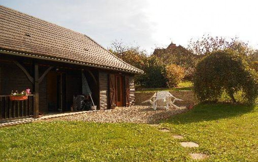 Chalet pour 4 personnes avec cuisine salon salle d'eau et wc indépendant chambre et mezzanine avec 2 couchages. Sallon de jardin et barbecue.
