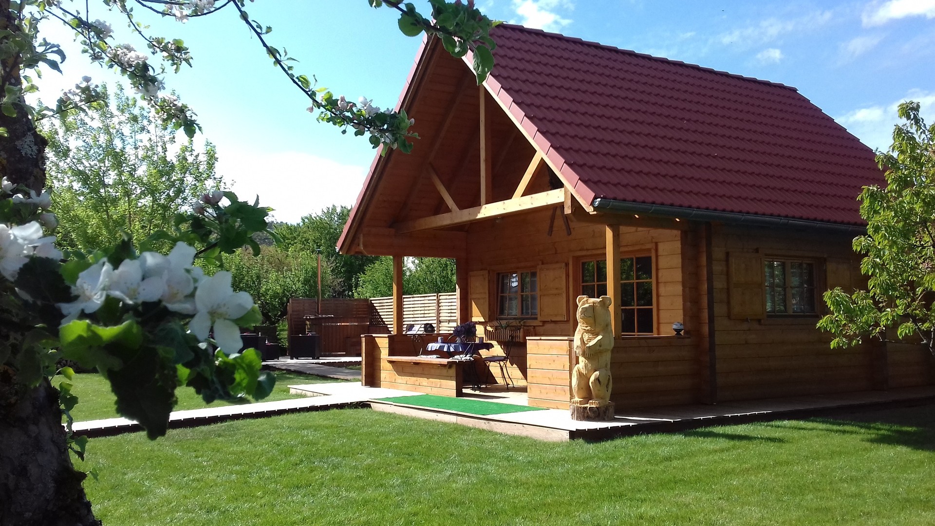 Loue chalet d'exception avec espace spa extérieur actif été comme hiver, inspiration montagne romantique. Aménagé avec une ambiance chalet alpin, vous pourrez vous y détendre à loisir. Situé dans un écrin de verdure, à l'intérieur de notre propriété au départ de pistes cyclables et de nombreux itinéraires de randonnée. En face d'un parc idéal pour vos promenades, au château de la Léonardsau. Possibilité de location de vélos électriques sur place Vélorando-alsace, avec ou sans parcours accompagné.