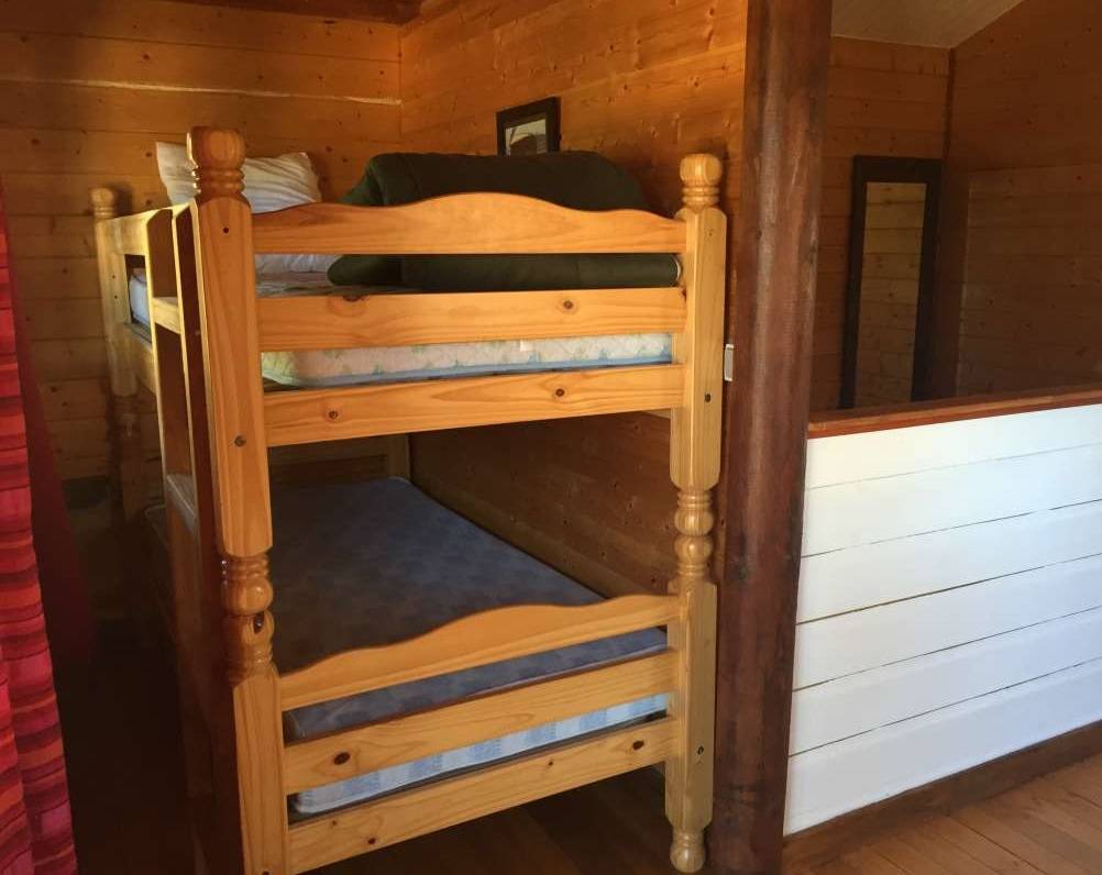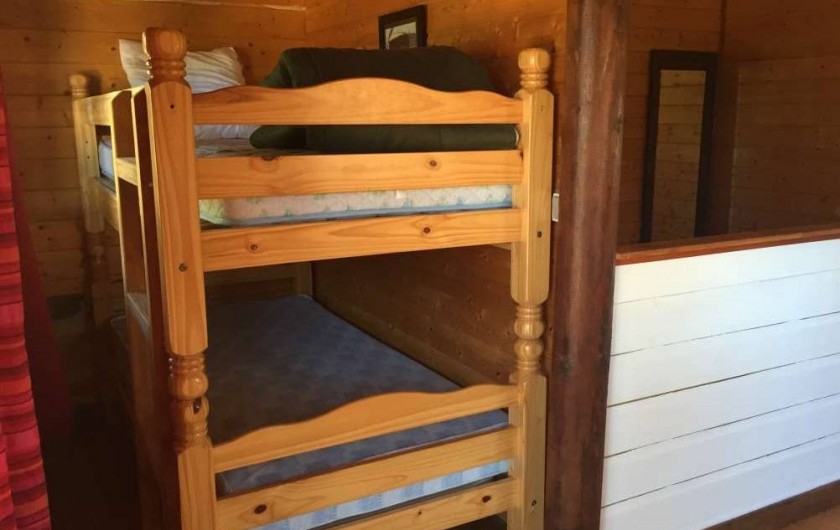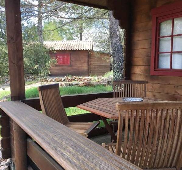 Chalet de 20m2 pouvant accueillir 4 personnes composé d’une pièce principale avec un lit en 140 et un lit double superposé en 90, canapé, d’une salle de bain avec une douche italienne et des toilettes séparées. Climatisation réversible (chaud / froid) et une terrasse couverte avec une table et quatre chaises.