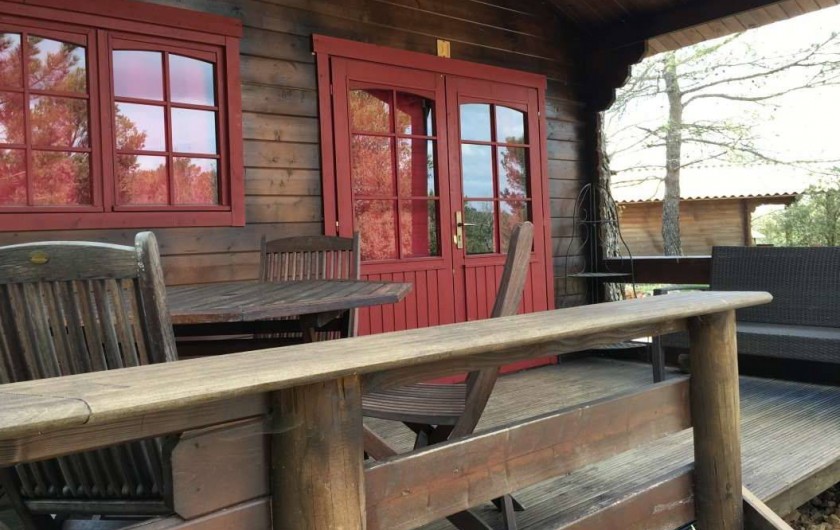 rouges avec tables de pique nique. A disposition un terrain de 2000 m2 pour jeux (pétanque, foot...)