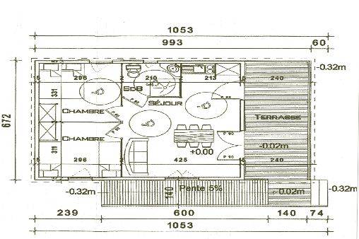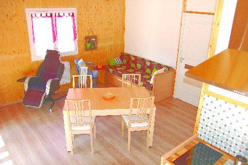 4 chalet de 45 m2 et 6 chalets de 50 m2 pouvant accueillir de 1 à 7 personnes, composé d'un séjour de 23 m2 avec une cuisine équipée, une table et des chaises, des placards de rangements, une télévision et une banquette convertible ; d'une chambre de 10 m2 avec un lit de 140 ; d'une chambre de 10 m2 avec 2 lits de 90 ; d'une salle de bains avec douche et wc, adaptée handicap ; d'une terrasse de 16 m2 ; accessibilité totale aux personnes à mobilité réduite ; les animaux sont acceptés gracieusement ; parking à disposition.