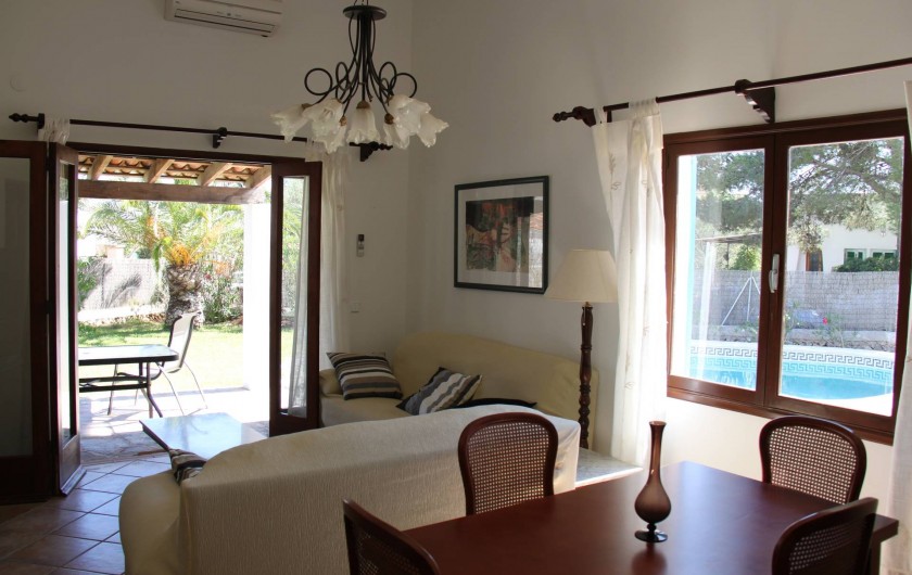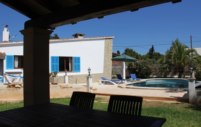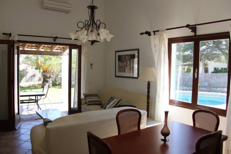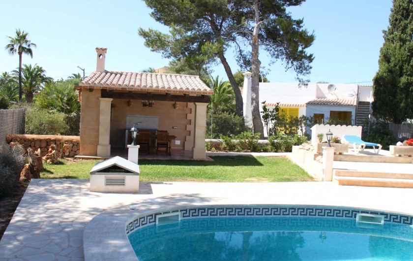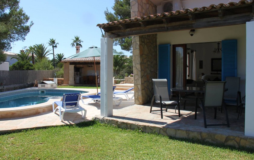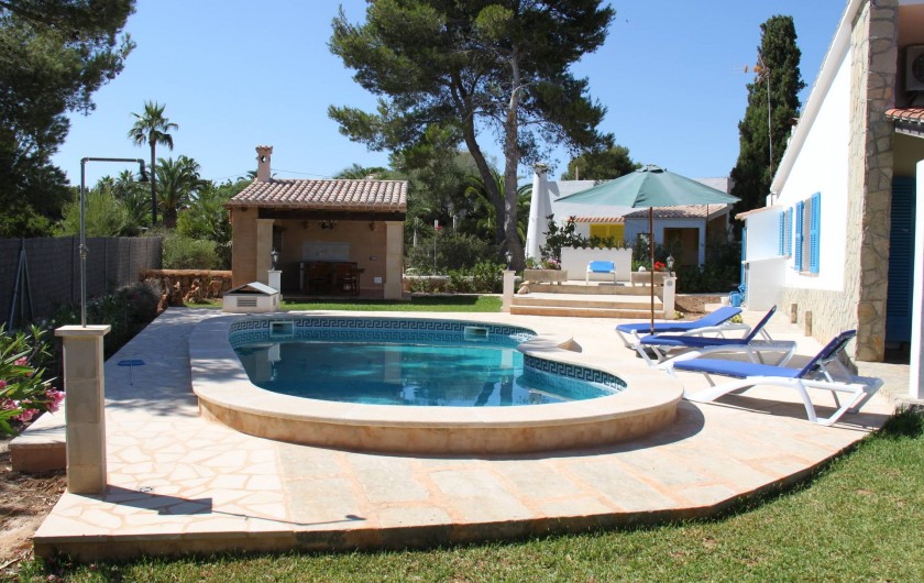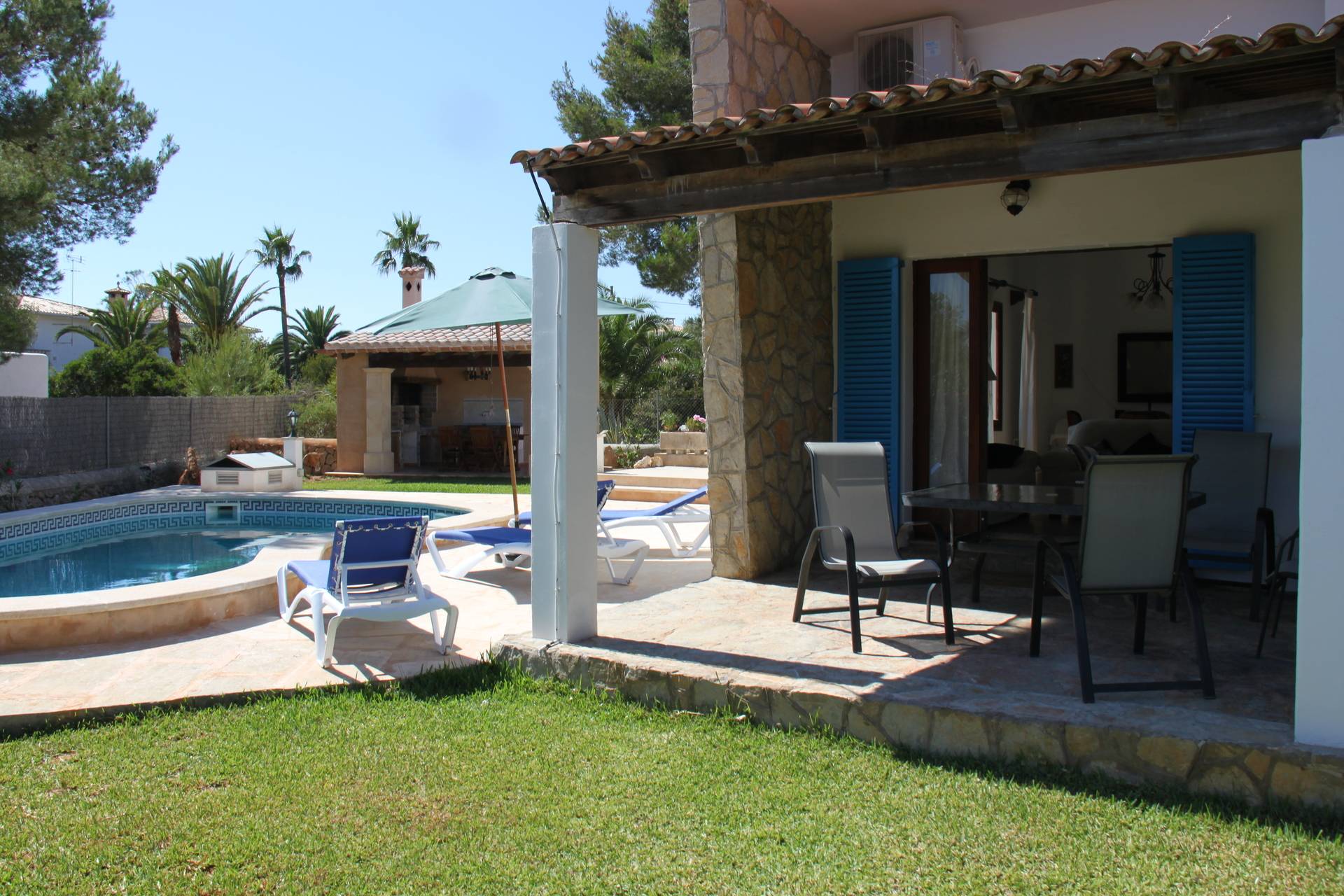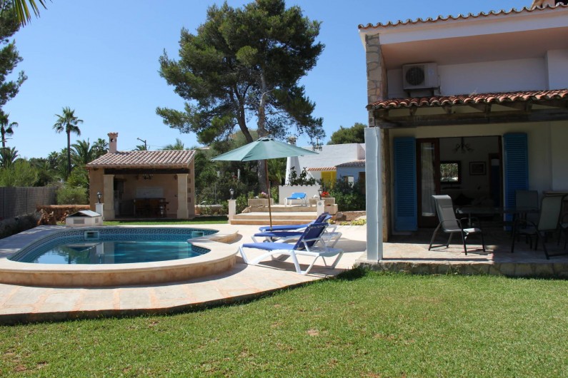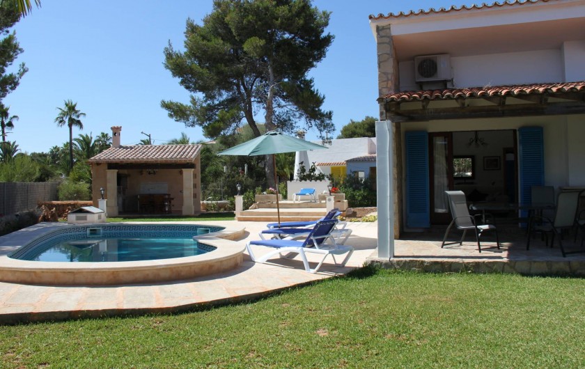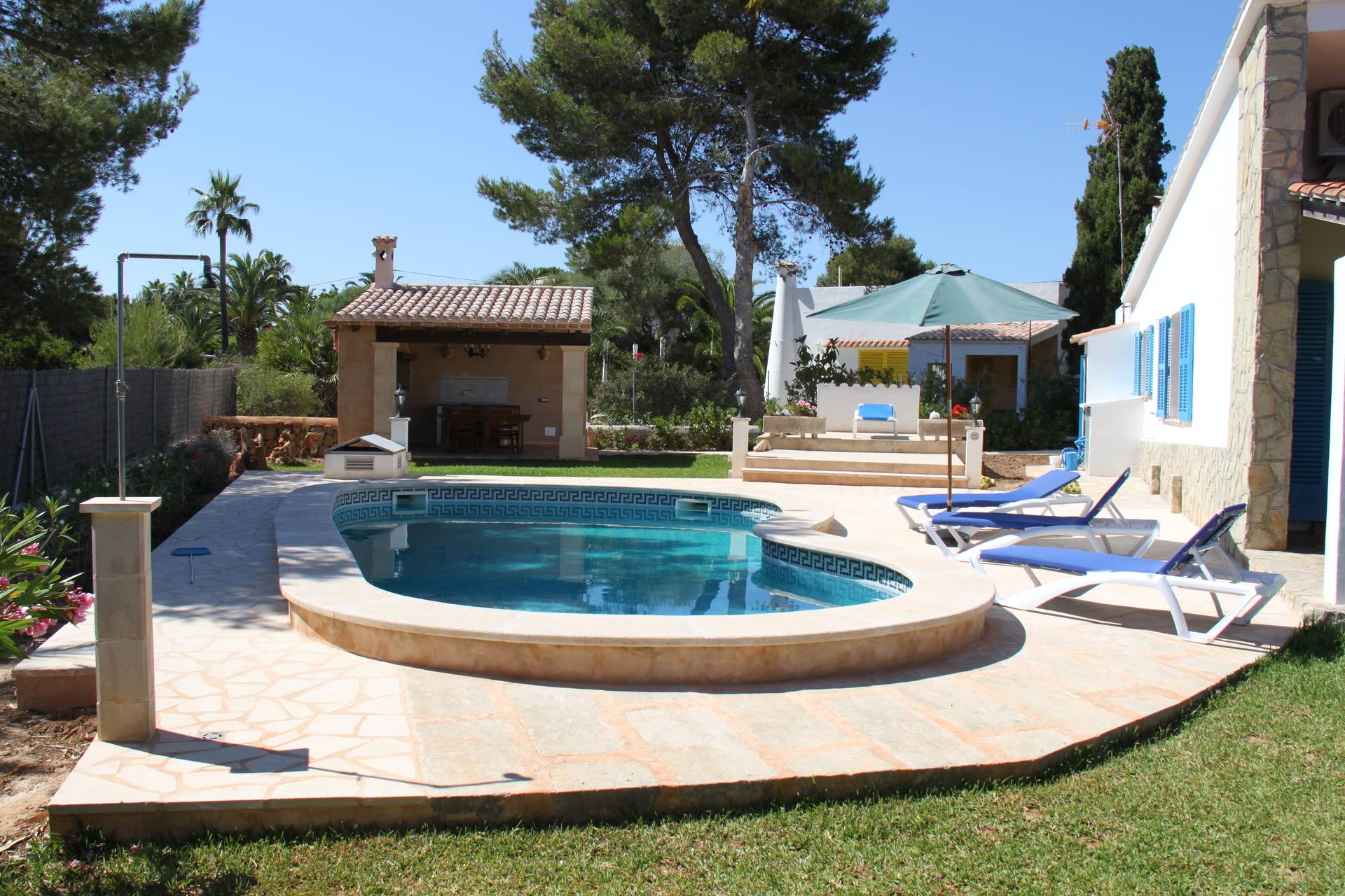 Villa de nouvelles installations, 2 chambres avec air conditionné dans chaque, 1 salle de bains, cuisine, salon avec air conditionné, TV satellite, DVD, livres, jeux de société, Tennis de table, sur terrain de 800 m2 entièrement clôturé, solarium, barbecue donnant sur la piscine privée, située à Cala Murada, village résidentiel et très calme.