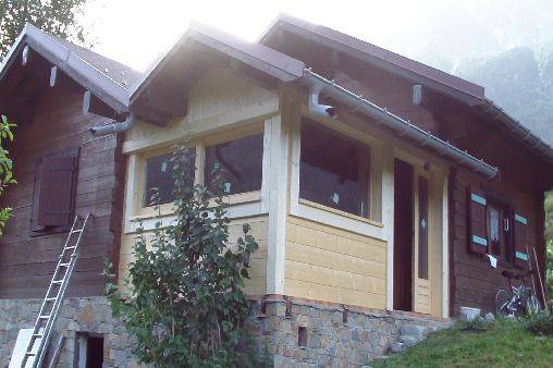 Location d'un chalet en bois, situé dans le village des Bossons, sur la commune de Chamonix Mont-Blanc 74 Haute-Savoie, France. Il fut construit par mon père en 1988 et il est situé sur un terrain de 1800 m2. Il est en bois de sapin provenant du massif des GLIERES-74-