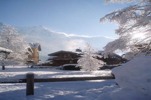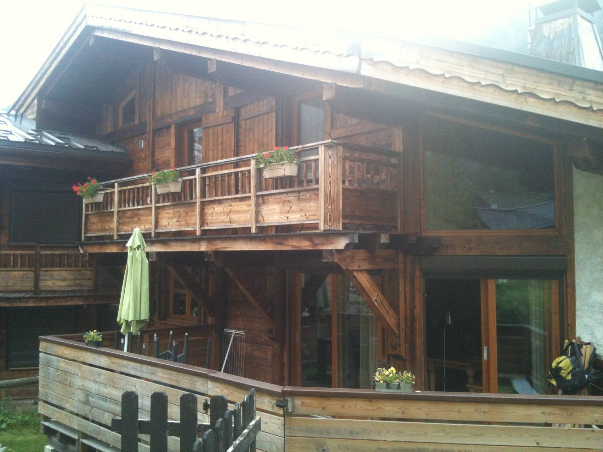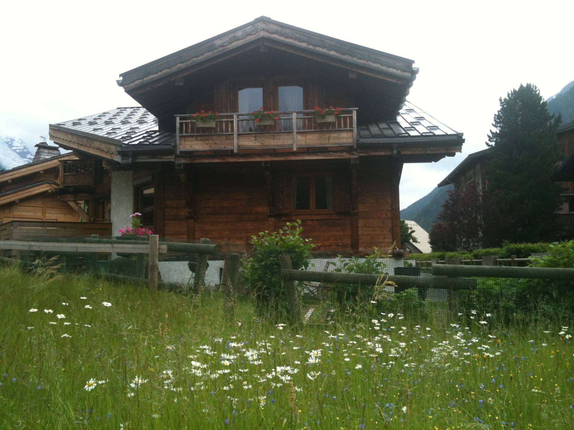 location chalet très cosy au cœur des Praz à 2 kms de Chamonix avec épicerie, presse tabac, bar et restaurant à 100 mètres, sans oublier les pistes de ski alpin et ski de fond à 200 mètres. vue sur les Drus et Mont Blanc. face au golf, arrêt bus très proche et sentier pour les randonneurs.