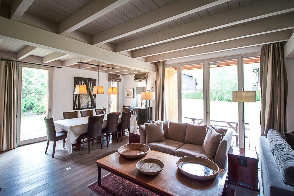 volumes sous plafond. Sa décoration est chaleureuse et raffinée avec des œuvres d’artistes modernes et contemporains de renom. Relaxer vous au calme dans l'immense jardin vue Mont Blanc.