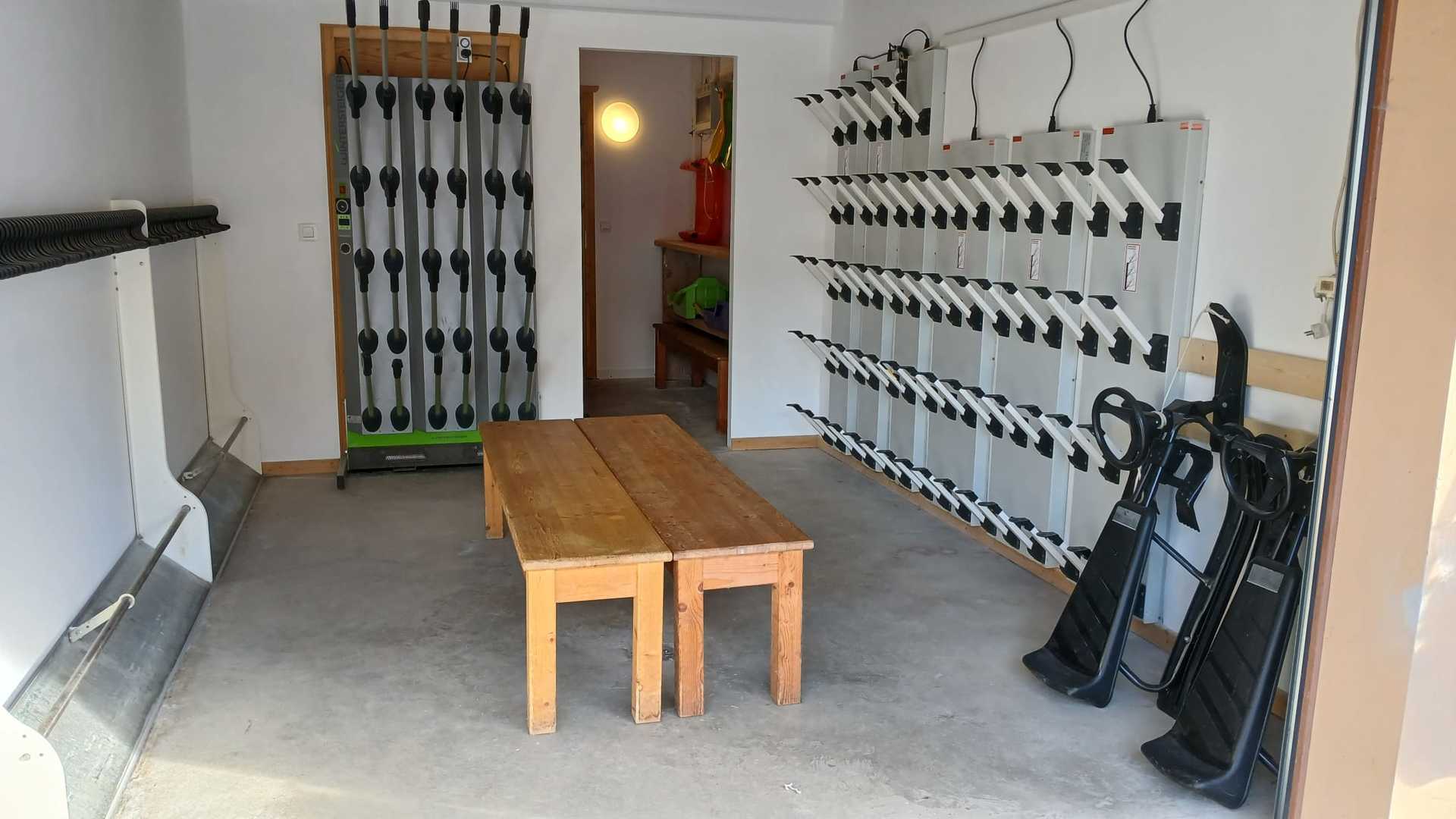 Local à ski + sèches chaussures + Abris couvert pour 7 voitures, garage moto et local à vélos été !
