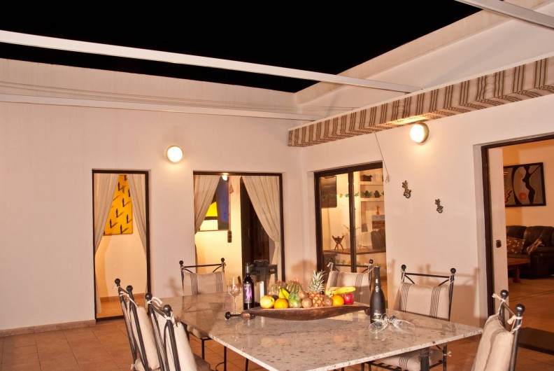 Lieu de rencontre pour les repas et les rassemblements sociaux est l'espace libre qui peut être couvert avec son système d'ombrage 44 mètres m² (store).