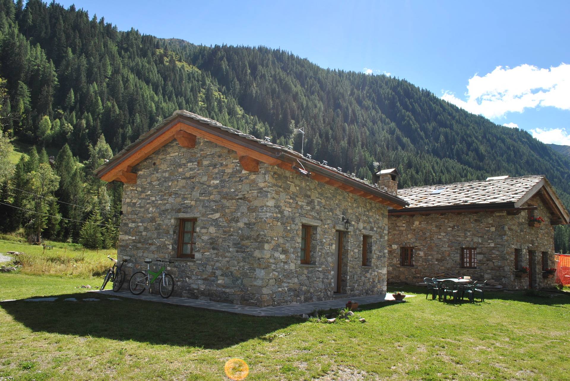 La chalet "Dama" est situé dans la localité Cuignon, plan Veny dans un bel endroit entouré par la nature et pour ceux qui veulent faire leurs propres vacances dans un chalet de montagne (à 5 km du centre de Courmayeur), après que le site La localité Zerotta et deux campings , prenez à gauche un chemin de terre et après 300 mètres, vous trouverez sur la droite notre chalet "Dama". Au rez-de-chaussée il y a une grande pièce avec cuisine (avec tout ce qu'il faut) et salle de séjour où il ce trouve aussi un canapè-lit, salle de bains avec douche, du centre d'un