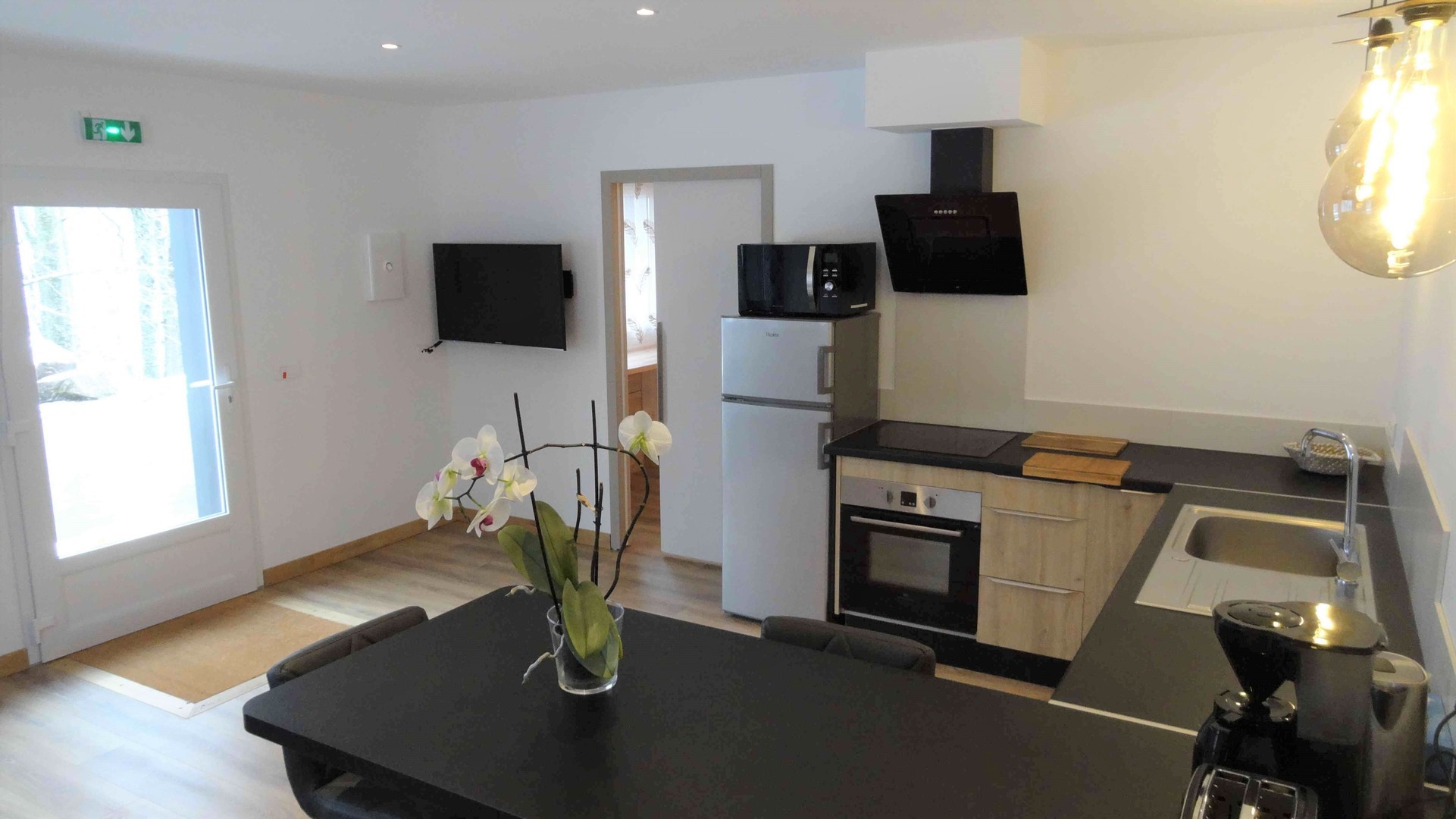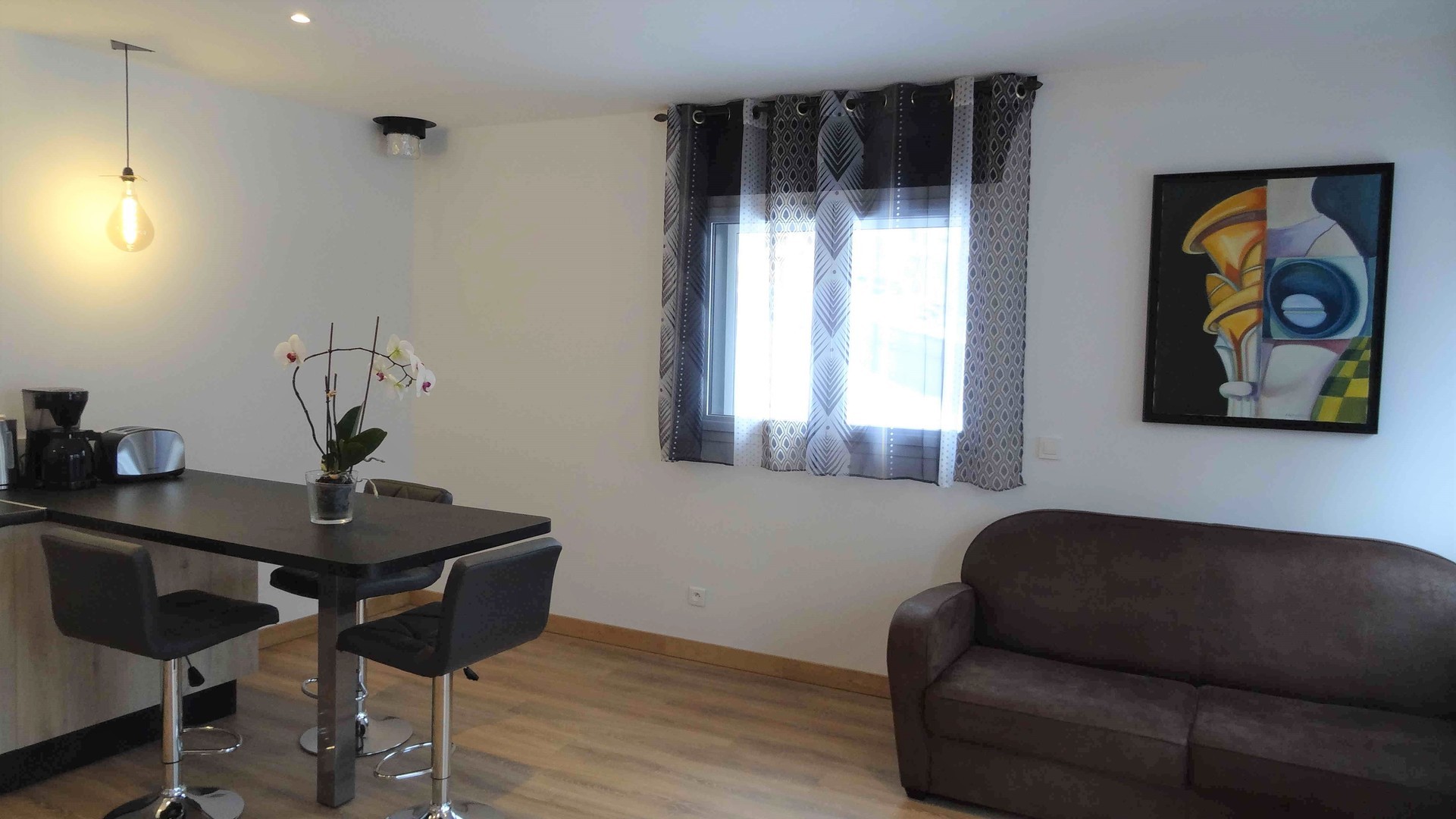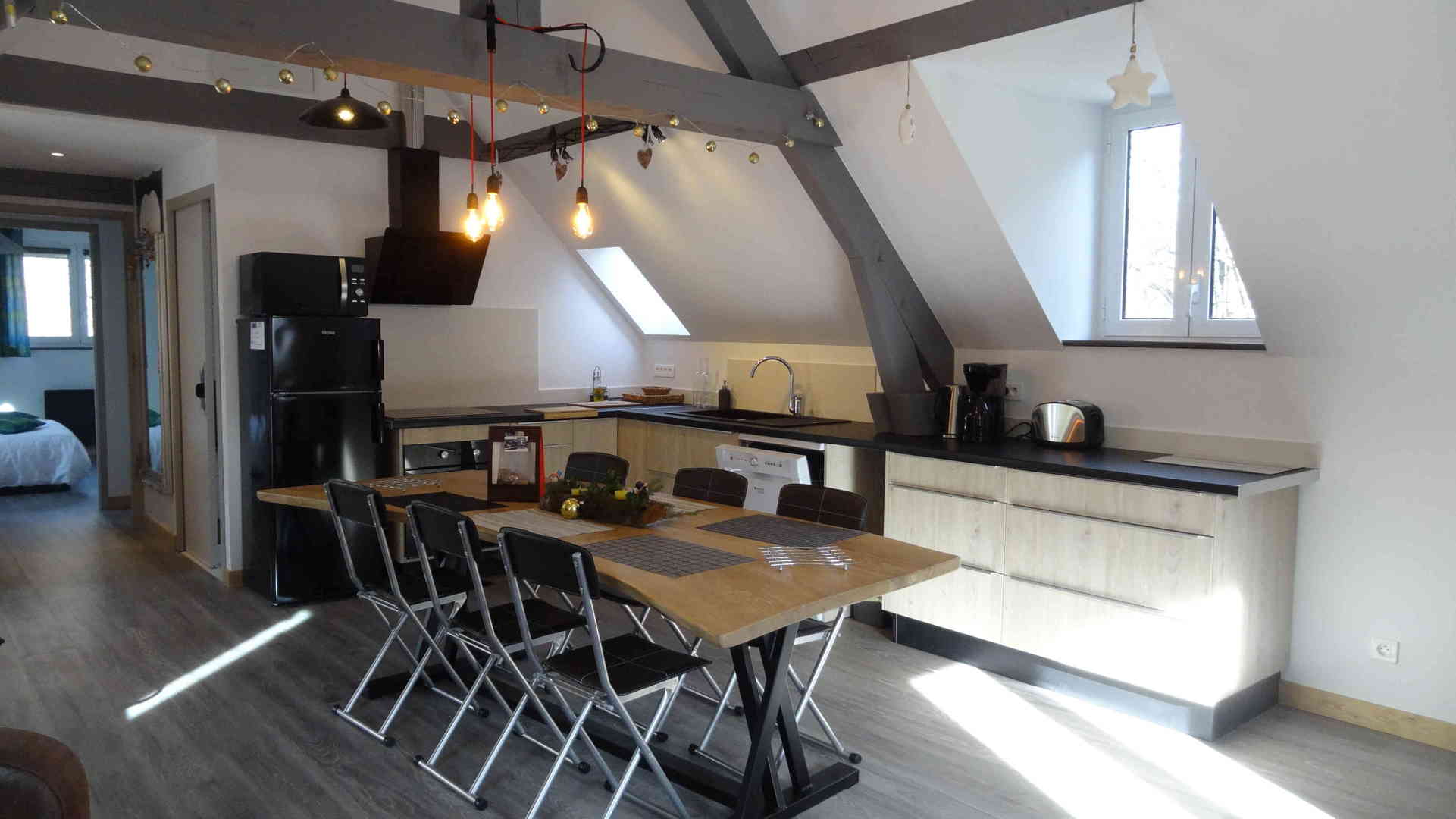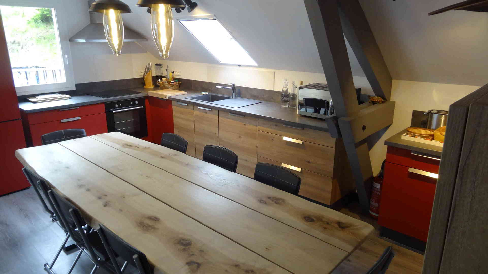 - La grande salle commune réuni l'espace séjour et l'espace cuisine et repas.