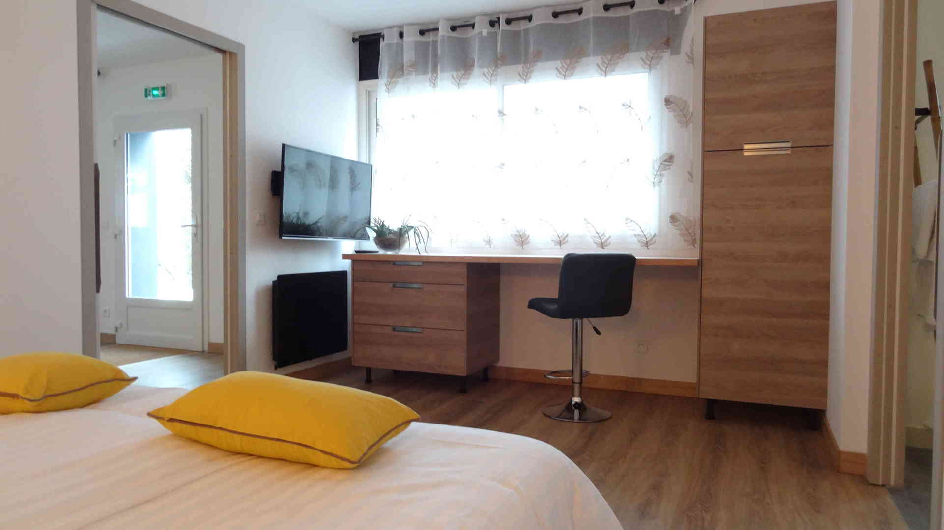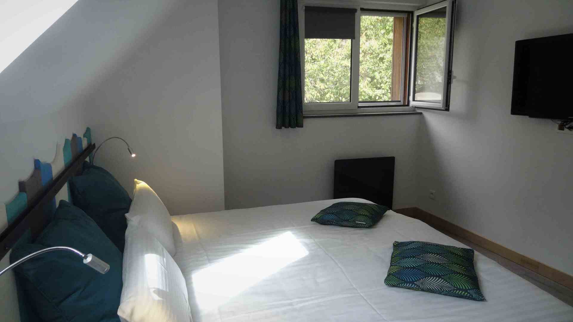 - Une chambre en version double (1 lit 160cm) ou twin (2 lits jumeaux 80cm)