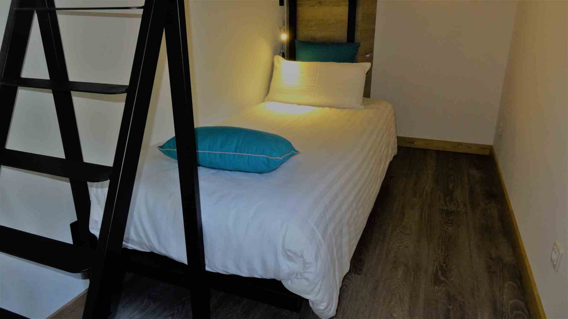 - Une chambre "cabine" composée de deux lits superposés 80cm.