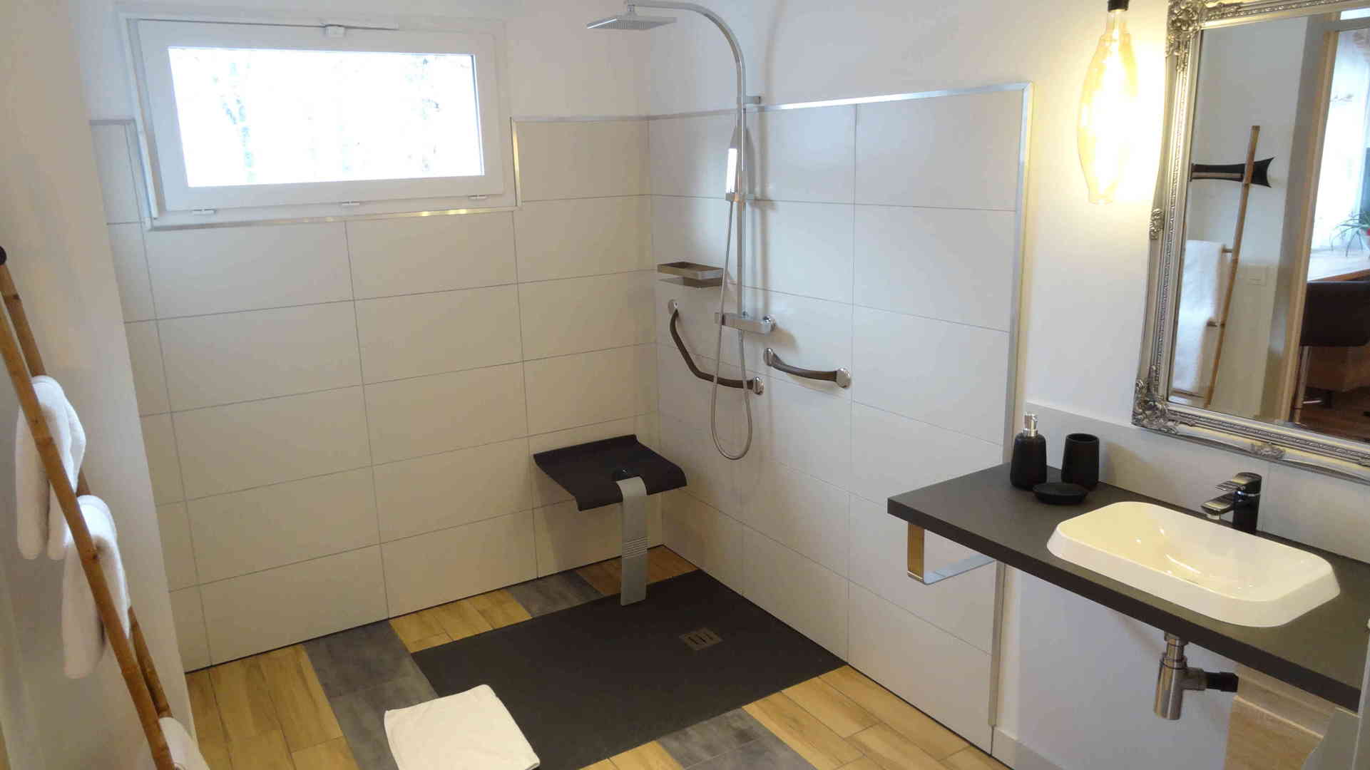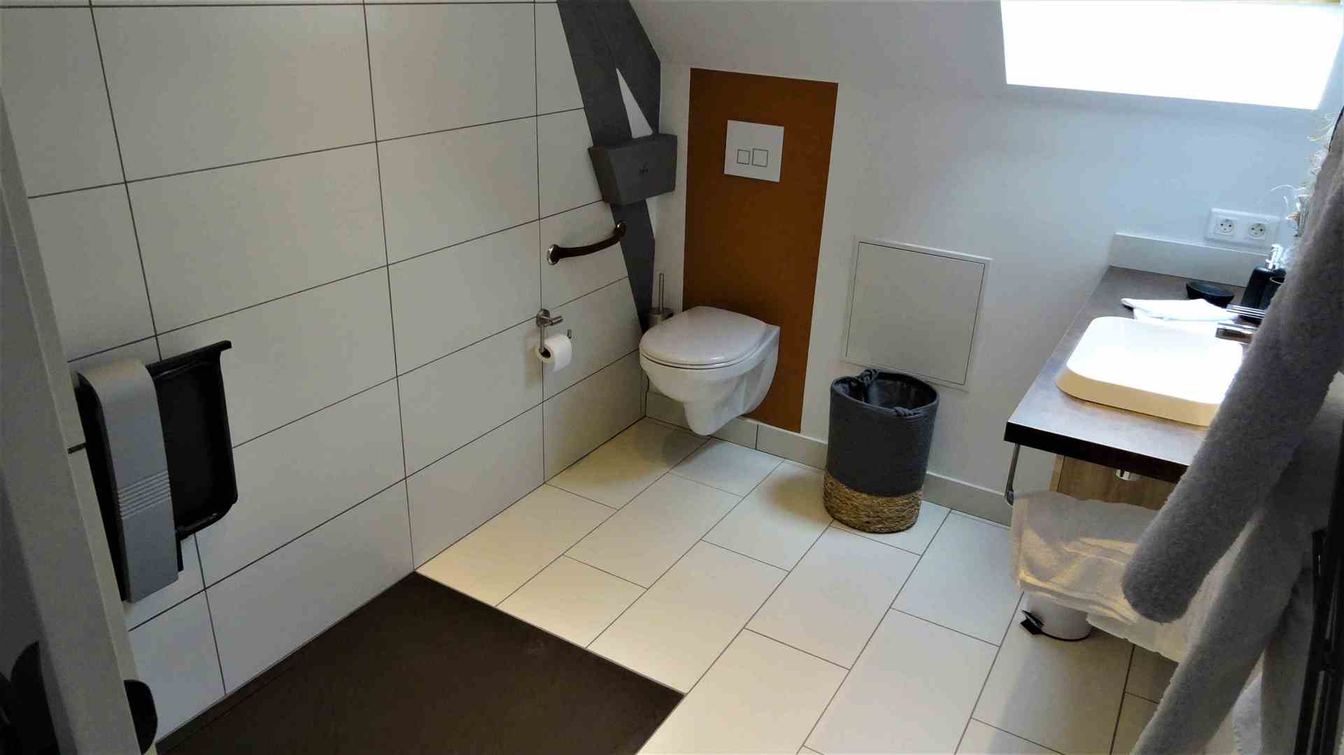 - Khéops possède une salle de douche à l’italienne, accessible PMR, ainsi qu'un WC indépendant