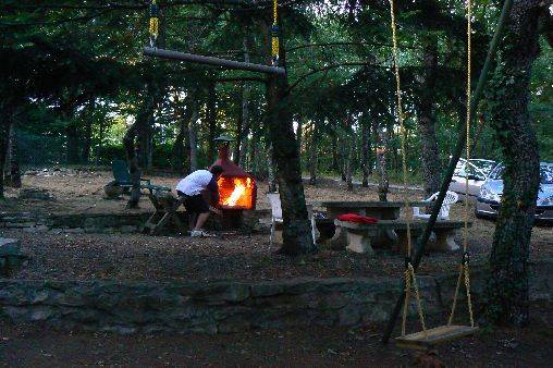 Le chalet: 2 chambres avec 2 lits 140. 1 salle d'eau, 1 salle à manger avec coin cuisine (Mini Four, micro onde) 1 canapé lit (en 90) Machine à laver le linge. TV ,internet ,wifi .Cheminée avec insert.Une terrasse bois fait le tour,(on peut y manger) barbecue table et bancs en pierre, balançoires privatives, bains de soleil.